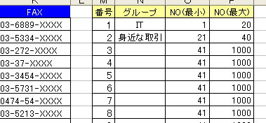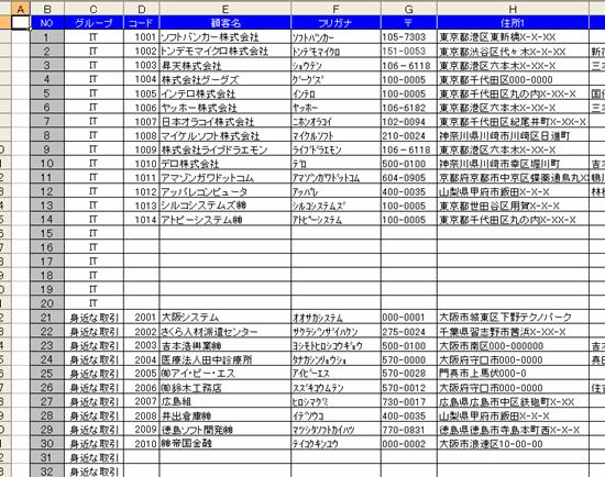 得意先の登録が終わりましたら、右側にセルを移動してください。データの右側にグループ名を