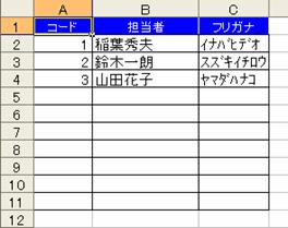 のブックにはシートが3枚あり、[得意先] と [品名] [担当者] のシートがありますので、