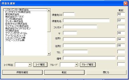 マスタに登録してある得意先を呼び出す場合、[客呼]ボタンをクリックします