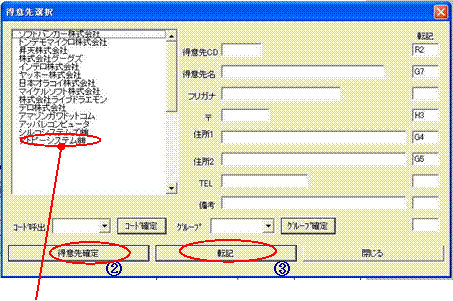 @ 得意先のコードを入力する A[コード確定]ボタンを押す B[転記]ボタンを押す
