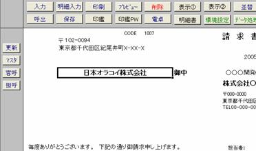 (右側のテキストボックスに顧客データが入る) これで請求書に得意先データが登録されます