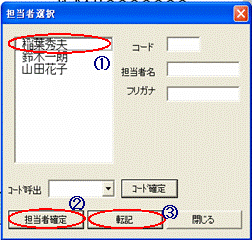 マスタに登録してある担当者を呼び出す場合、[担呼]ボタンをクリックします